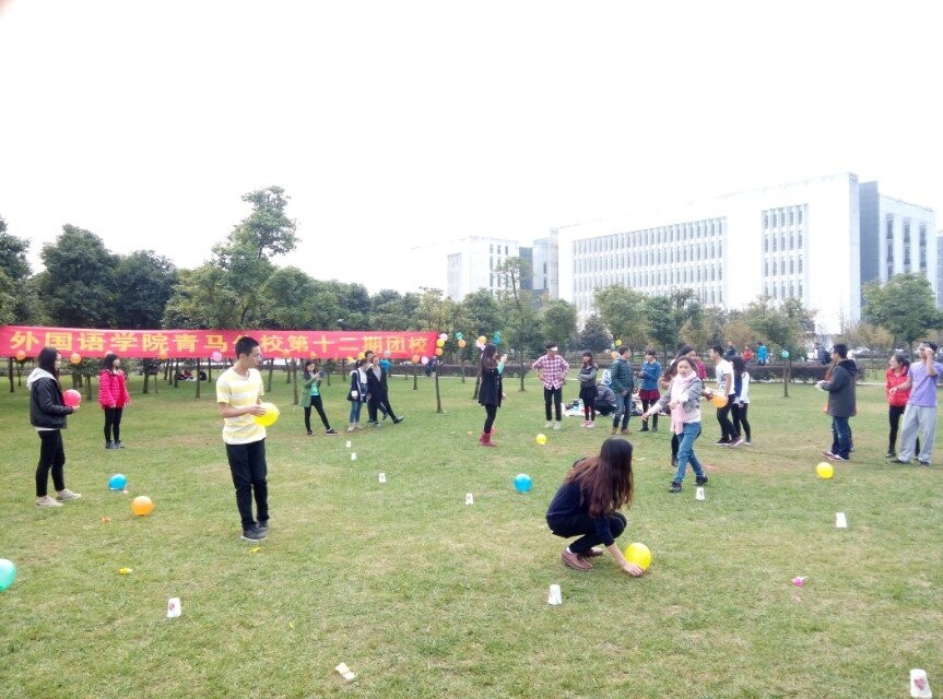 同时,学院还进行了青马培训的素质拓展活动。素质拓展活动旨在提升学生干部的团队意识,锻炼大家的组织协调能力。同学们被分成了四个小组共同协作完成了“衔杯传水”、“无敌风火轮”、“蜈蚣步” 等拓展项目。展现了团队的协作与配合能力。