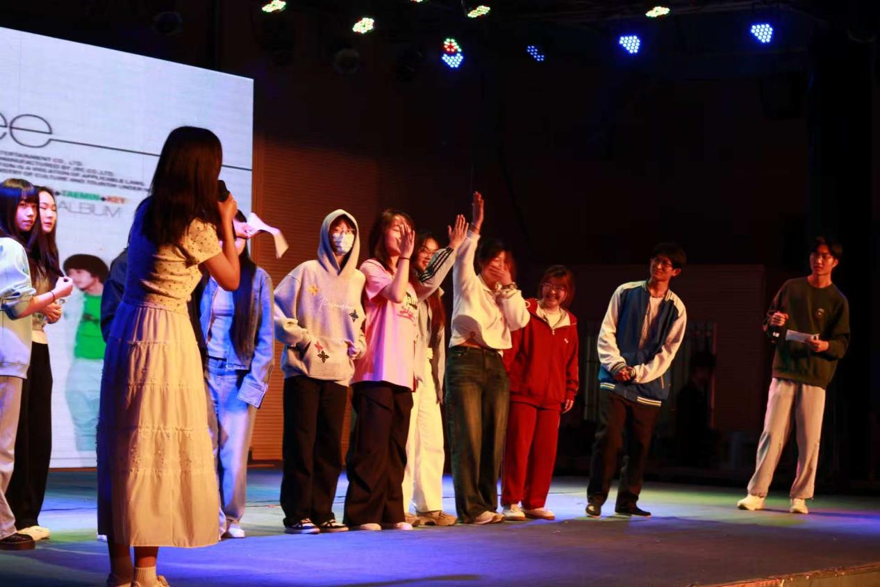 中场设置 "听歌识曲" 暖场互动环节,观众需根据外文歌音频猜出此歌歌名。现场同学踊跃参与,用各自的“小音乐库”,在台上台下形成了欢乐的音乐海洋。