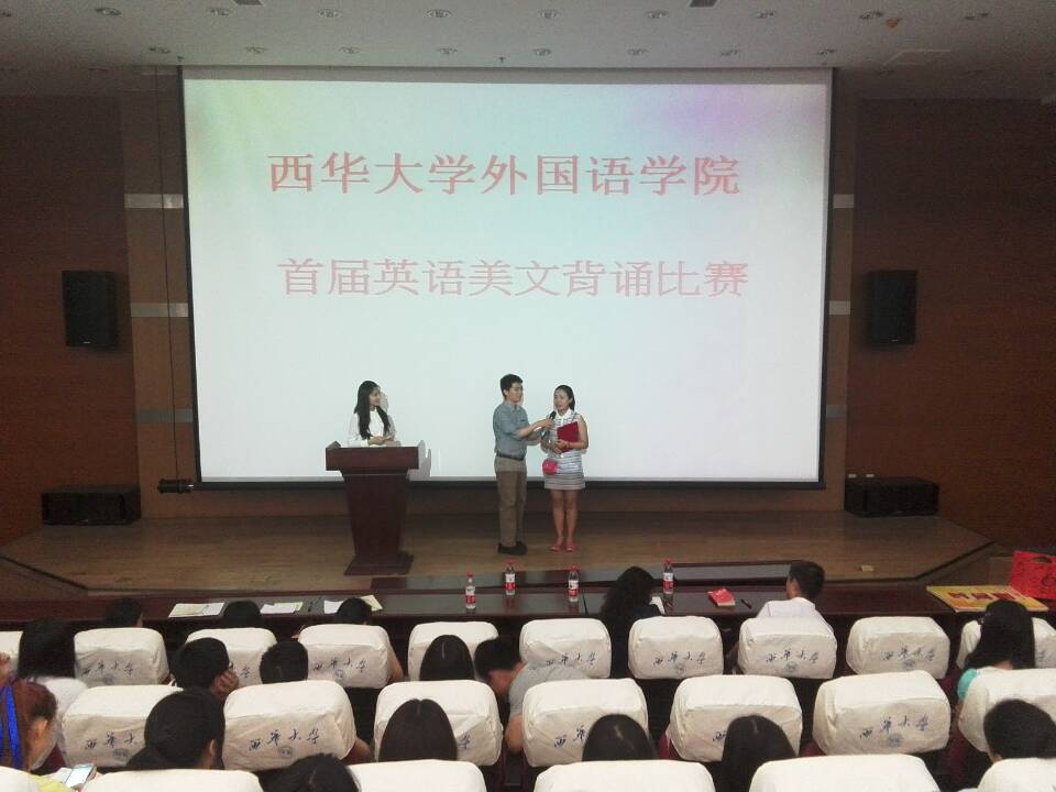 本次比赛奖项设置为一等奖一名,二等奖两名,三等奖三名及优秀奖若干名。经过激烈的角逐,2014级英语1班杨谨瑜同学摘得一等奖桂冠,唐慧玲、刘鑫同学分别荣获二等奖。