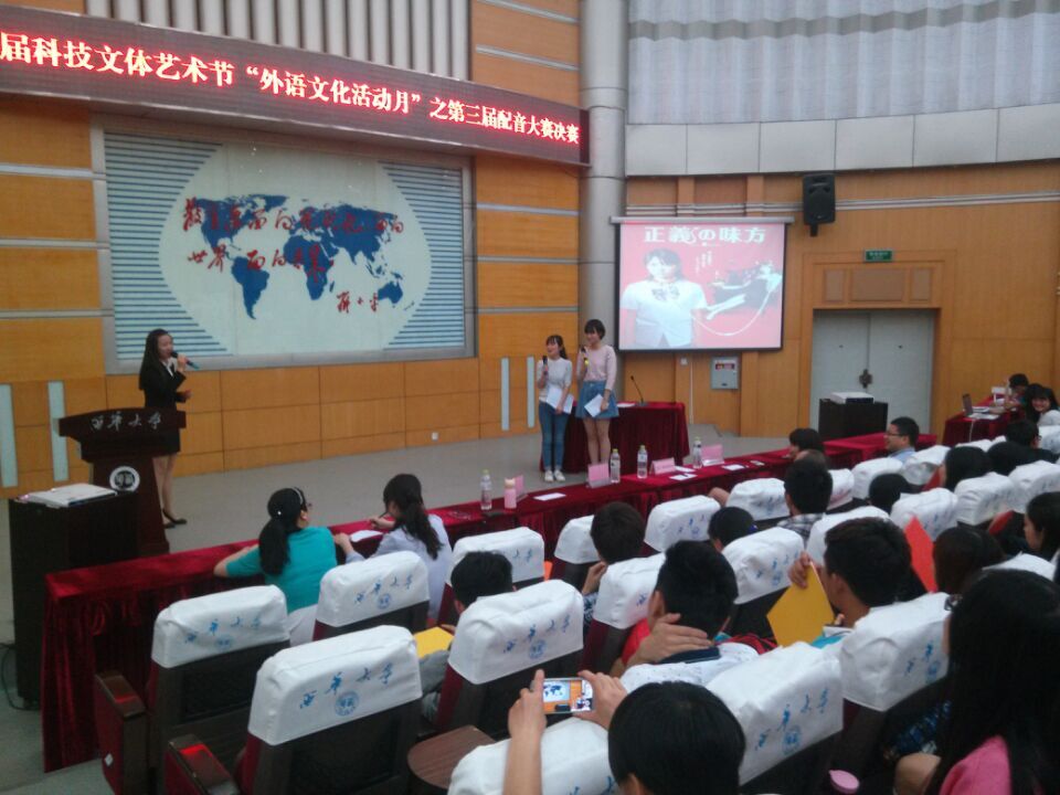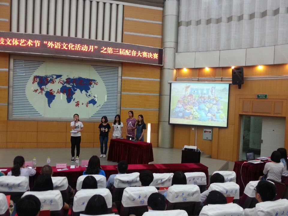 五月十一日晚七点,betway88西汉姆联外语活动月系列重磅活动英、日语配音大赛决赛在四教报告厅完美收官。来自betway88西汉姆联英语系,日语系的老师谢敏,王晓芬,Karl Gustafson外教与2014级辅导员王丹丹老师担任专业评委,和来自本院及外院的二十位大众评审和观众们一起,共享了这场外语与影视文化激情碰撞的盛宴。