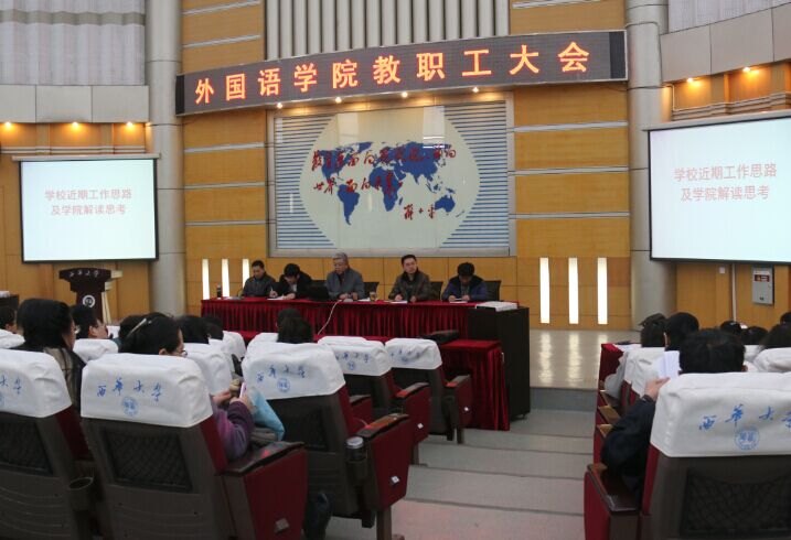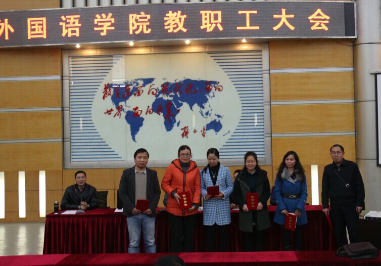 3月12日下午,betway88西汉姆联教职工大会在四教报告厅召开,会议由学院党委副书记曾国勇主持。会上,陈达院长就学院寒假期间MTI评估报告和相关支撑材料的准备情况及人才培养方案修订的进展情况进行了通报,传达了学校干部会相关精神,对涉及学院改革发展的相关问题进行了分析和解读,部署安排了学院新学期工作;蒋志勇书记分别用“幅度、速度、力度”三个关键词谈了对学校当前改革的感受和体会,结合学校改革的相关措施,对学院面临的形势进行了深入分析,鼓励并希望全院教职工主动适应学校改革发展的新常态,积极参与大学英语教学和专业人才培养的改革,处理好继承与发展的关系,勇挑重担,全面推进学院建设与发展;曾国勇副书记结合学院专业发展和人才培养就学院学生工作特别是就业工作进行了通报;院长助理李国宏、澳研中心副主任李学芹分别传达了学校教学工作会关于专业培养方案和大学英语教学相关要求。会上对学院2014年度综合考核优秀的教师进行了表彰(名单附后)。