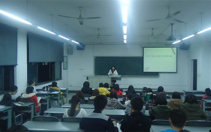 11 月 7 日 晚 7 : 00, 2013 级经验交流会在 6c -429 举行。 2010 日语系学生尹倩 、 戴爱玲作为嘉宾与 2013 级新生分享了学习经验。