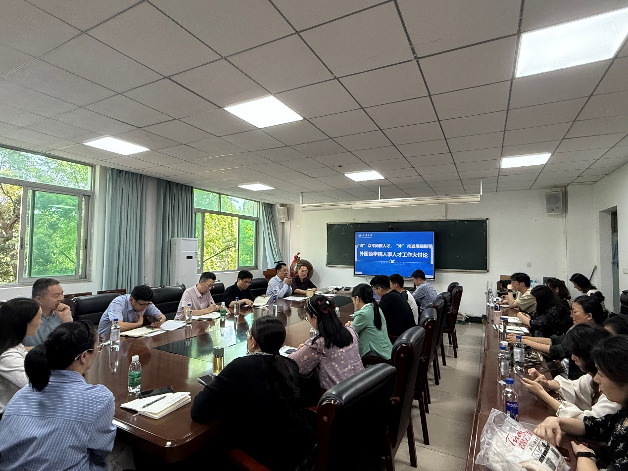 会议伊始,围绕学校人才队伍建设展开深入研讨。在当前竞争激烈的教育环境下,外语高层次人才 “外引” 和青年人才 “内培” 工作成为讨论焦点。参会人员积极发言,从不同角度分析了这两项工作面临的机遇与挑战,共同探讨了可行的发展前景和建设性建议。大家一致认为,引进高层次人才能够为学院带来新的学术思想和研究方向,提升学院整体学术水平;同时,人才引进要做好“外语+”的规划布局,做好交叉学科的人才储备;而加强青年人才内部培养,则是保障学院可持续发展的关键,有助于打造一支结构合理、充满活力的师资队伍。