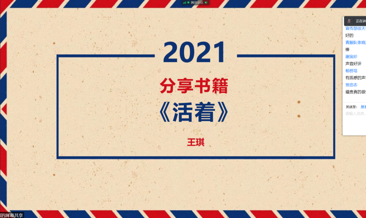 此次读书分享会搭建了一个供同学们阅读红色经典、培养红色思想、交流红色文化的平台,深化了同学们对中国共产党百年艰苦岁月、百年光辉历程的了解,得到了参会同学的一致好评。