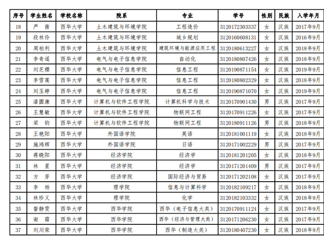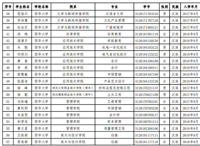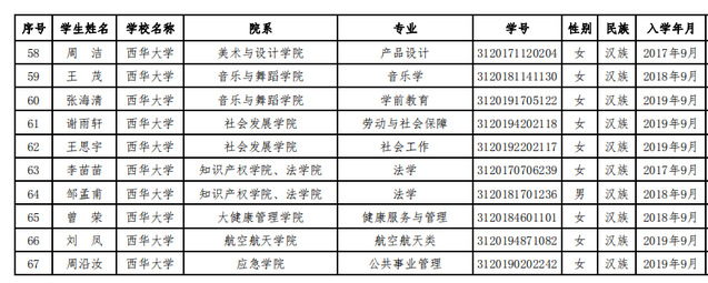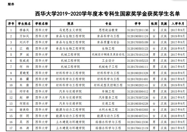 关于公布西华大学2019-2020学年度本专科生国家奖学金获奖学生名单的通知