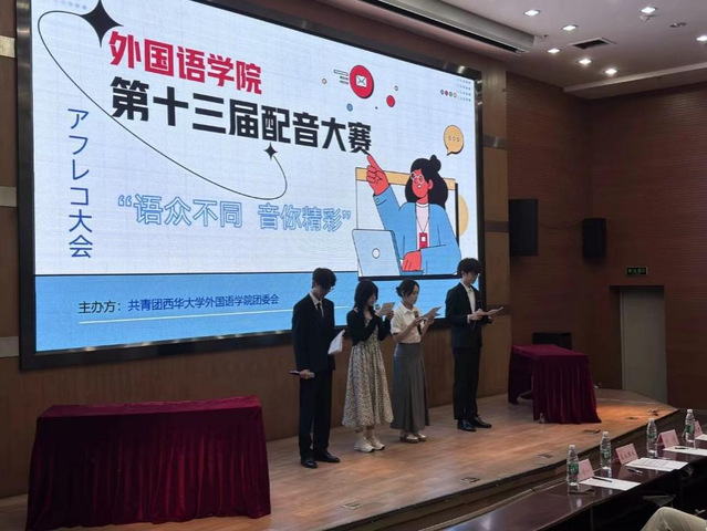 西华大学betway88西汉姆联第十三届配音大赛于2025年4月17日,在图书馆报告厅二厅圆满落幕。出席此次大赛的评委有:英语系系主任梁勇老师,英语系教师谭震老师,日语系教师杨清老师,日语外教森永雄大老师,日语系教师朱大江老师,团委指导教师齐佳一老师。