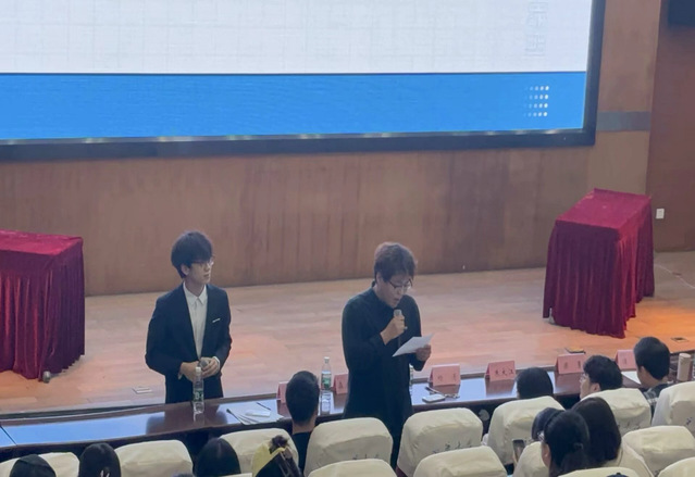 团委指导老师齐佳一老师、英语系教师谭震老师,英语系系主任梁勇老师,日语系教师朱大江老师以及外教森永雄大老师分别对英语和日语配音比赛进行点评。五位老师分别从不同角度强调配音时融入角色至关重要,同时语音语调的准确把握也会极大影响表演效果,并对选手们当晚的出色表现给予高度赞扬。