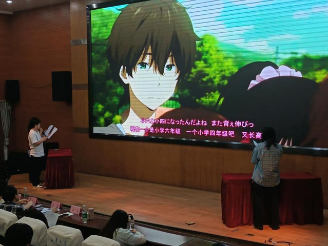 决赛现场,选手们展现出了卓越的配音实力。在英语配音环节,他们精准把握角色情绪,无论是经典电影中的激情片段,还是温馨动画里的细腻对白,都能用流利纯正的英语演绎得栩栩如生,凭借清晰的发音、充沛的情感和恰当的语调,将观众带入一个个精彩的故事世界。日语配音部分同样精彩纷呈,选手们对日语语音语调的精妙把握,以及对动漫、日剧等不同题材中人物的生动模仿,让现场观众身临其境,充分领略到日语的独特魅力。现场气氛热烈,掌声此起彼伏。