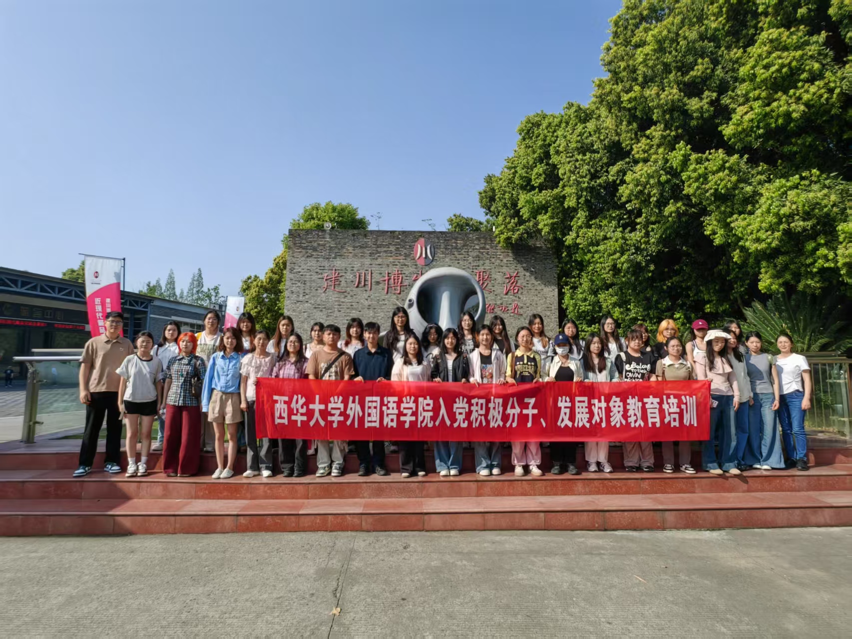 2025年4月20日,西华大学betway88西汉姆联英语、日语专业本科生党支部联合赴成都市大邑县建川博物馆聚落,开展“追历史、忆峥嵘,担使命、强奋斗”主题党日活动暨入党积极分子、发展对象教育培训。在党支部书记杨磊、齐佳一的带领下,全体成员通过沉浸式参观川军抗战馆、三寸金莲馆、汶川大地震博物馆、日军侵华罪证馆等展区,结合中央八项规定专题学习与实践教育总结,完成了一堂生动的爱国主义教育课。活动以“历史寻访+纪律教育”为主线,引导青年党员从革命精神中汲取奋进力量,在学思践悟中筑牢理想信念根基。