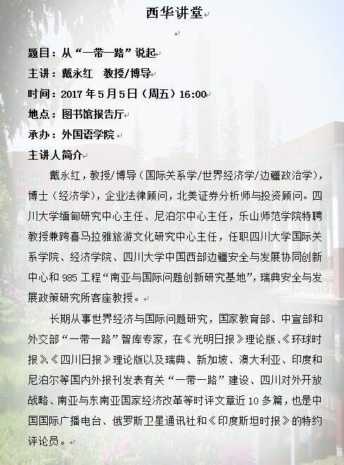 西华讲堂-从“一带一路”说起(主讲人:戴永红 教授 博导)