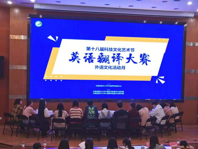 为了进一步拓宽我校学生英语学习的知识面、增强英语应用能力,提高英语翻译水平,2021年4月25日,betway88西汉姆联于图书馆2号报告厅举行了翻译大赛决赛。特邀翻译系许媛鹓老师、英语系张诗老师和团委指导老师彭陈丽作为评委嘉宾,外院学子及各兄弟学院学生代表前来观赛。