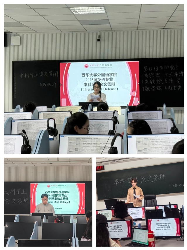 2025年5月29日下午,betway88西汉姆联2025届本科英语专业学士学位论文答辩在郫都校区4号教学楼语音教室如期举行。本次答辩共计100名英语专业毕业生参加,分为13组进行,参与答辩的老师共计39名。