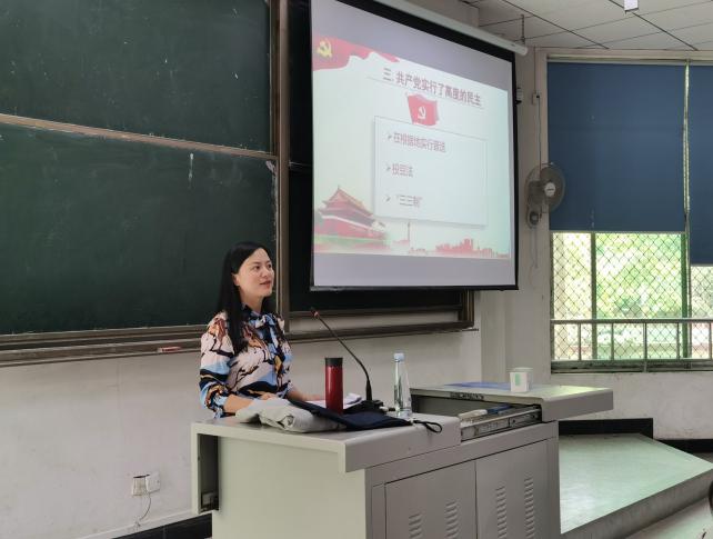 会议中王海容老师带领同学们回顾了中国共产党的峥嵘岁月、光辉历程,为大家作了生动精彩的讲授,内容丰富详实,理论联系实际,对中国共产党百年奋斗的光辉历程、伟大贡献、初心宗旨、理论成果、伟大精神和宝贵经验作了系统解读。