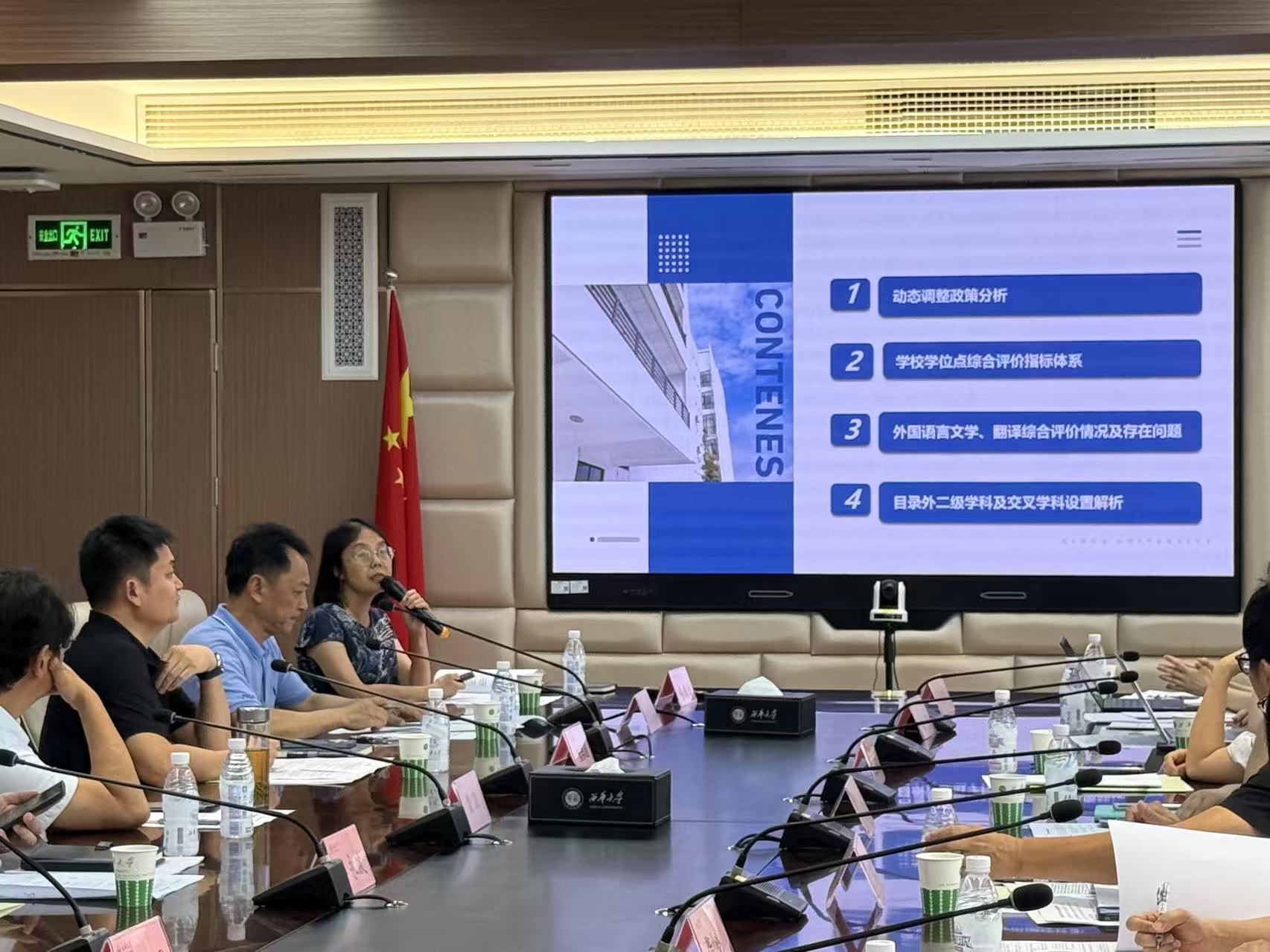 会议由betway88西汉姆联党委书记唐润华主持。发展规划与学科建设处处长王军首先结合学校学位点综合评价体系分析了外国语言文学学科建设情况。她建议学院在区域国别研究方向命名、研究特色凝练等方面参考国内高校经验,强化与学校优势学科的协同。