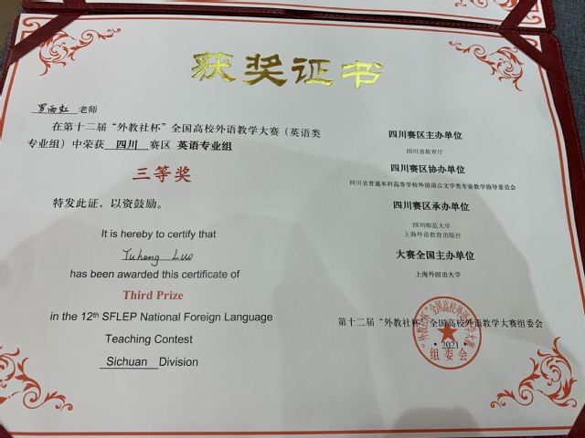 本次大赛分为英语专业组和商务英语专业组两个组别,初赛由各高校自行组织;复赛采用现场授课形式,十位学生配合授课,每位参赛选手授课时间为20分钟,再由专家评委进行评分;决赛由说课和回答评委提问形式组成,说课时长为10分钟、专家评委提问5分钟。按照学校领导的批示,外语学院高度重视本次大赛,赛前组织专门团队对两位参赛教师进行培训指导。张诗、罗雨虹两位老师在比赛中沉着自信,充分运用自身教学经验,全力展现优质课堂,经过激烈角逐,最终张诗老师斩获本次大赛商务英语专业组一等奖、罗雨虹老师斩获英语专业组三等奖。