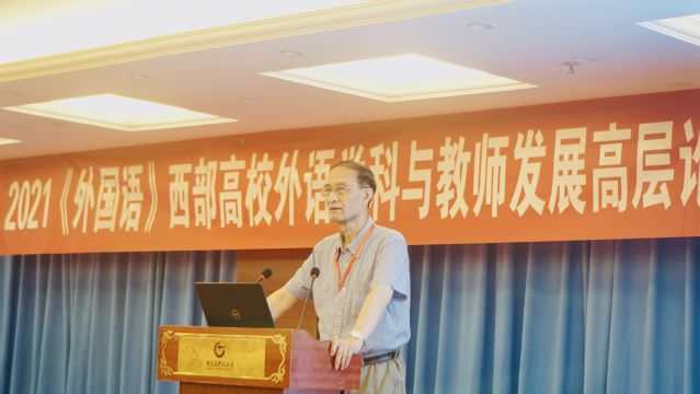 然后,复旦大学外文学院教授、博导曲卫国作了“谈谈英语本科专业教材建设中的理论依据和思路问题”主旨发言,他提出唯有改变、甚至扬弃目前所依据的教材编写理论和思路,英语本科专业的教材才有可能突破教材编写的瓶颈问题,实现第三次转型。