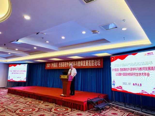 正值中国共产党成立100周年之际,为推动中华优秀传统文化创造性转化、创新性发展,促进中外学术交流,我校betway88西汉姆联与上海外国语大学《外国语》编辑部于7月3日在成都丽天花园大酒店联合举办以“外语教育与文明互鉴”为主题的“西部高校外语学科与教师发展高层论坛”。出席本次论坛的有来自复旦大学、上海交通大学、四川大学、西南大学、湖南大学、上海外国语大学、对外经贸大学、西华大学等十余所高校的专家教授、优秀博士生、硕士生代表。本次论坛采取线上和线下结合形式,在腾讯会议与bilibili进行实况直播。
