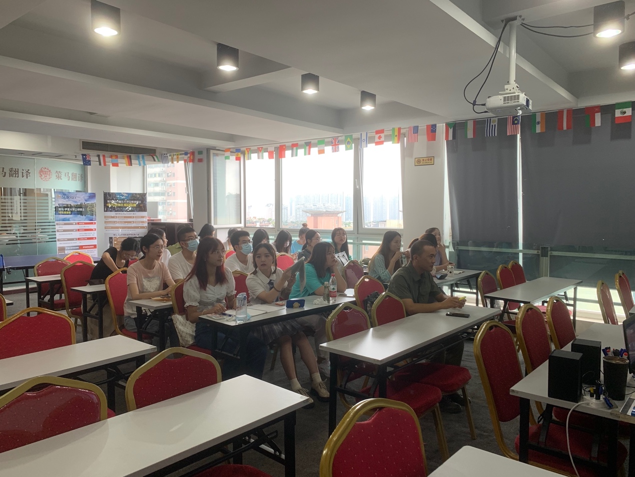 成都策马翻译公司的杨宇霄老师,首先对西华大学2020级翻译硕士专业的同学们表示了热烈欢迎。然后为同学们讲解了真实口译场景和平时练习的区别,在真实的口译环境中,口译员会受到对方人员口音的影响,从而提升口译的难度。其次真实的口译场景和在教室里练习口译是有所不同的,临场感会给口译人员带来心理压力,需要口译人员根据现场实际情况,对翻译语言进行灵活的处理。同时,杨宇霄老师也强调了口译人员在进行正式口译之前需要做足译前准备,尤其要注意翻译的受众;另外还要注意官方讲话的语言特色,大型会议的语言较宏观,对于口译人员的容错率较低,而小型会议的语言偏重细节和灵活,更加考验口译人员的灵活处理能力。