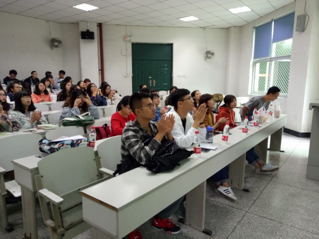 第二位向大家分享学习经验的是2015级英语专业的杨露,她推荐大家多参加一些各类有价值的英语竞赛,如外研社英语写作大赛,通译杯等,通过比赛丰富自己的阅历,审视自身。还比较分析了公外学生与我们专业学生的优劣势,建议大家多涉猎其他专业知识,不要局限在某一特殊领域。最后,杨露同学也讲述了自己关于考研选择的一些看法,同学们收益颇丰。