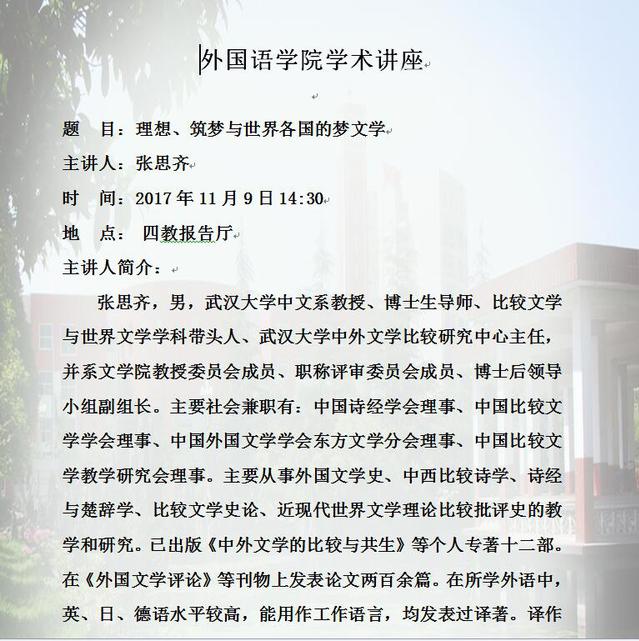 学术讲座(时间11月9日14:30 四教报告厅)