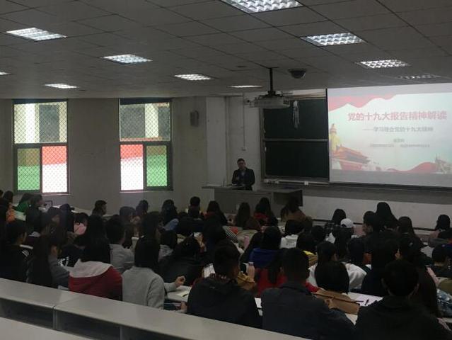 11月15日中午12:20,betway88西汉姆联组织举办了主题为“党的十九大报告精神解读 ”的学习讲座。讲座主要围绕党的十九大报告和十九大会议基本内容和重要精神展开。学院各学生党支部书记、团委学生会全体学生干部参加了本次会议。讲座由学院团委书记曾渝理主持,学院辅导员、马克思主义学院兼职教师梁正科老师担任主讲。