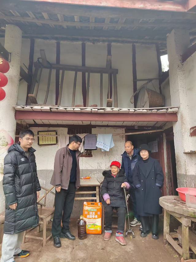 12月12日上午,党支部成员抵达龙蟠镇水堰口村,立即开展入户走访慰问。在结对帮扶对象家中,张彦书记与党员同志们与村民亲切交谈,细致询问家庭状况、收入来源、健康状况以及当前面临的困难,认真记录他们的需求,并鼓励他们保持信心,在政策帮扶与自身努力下创造更美好的生活。