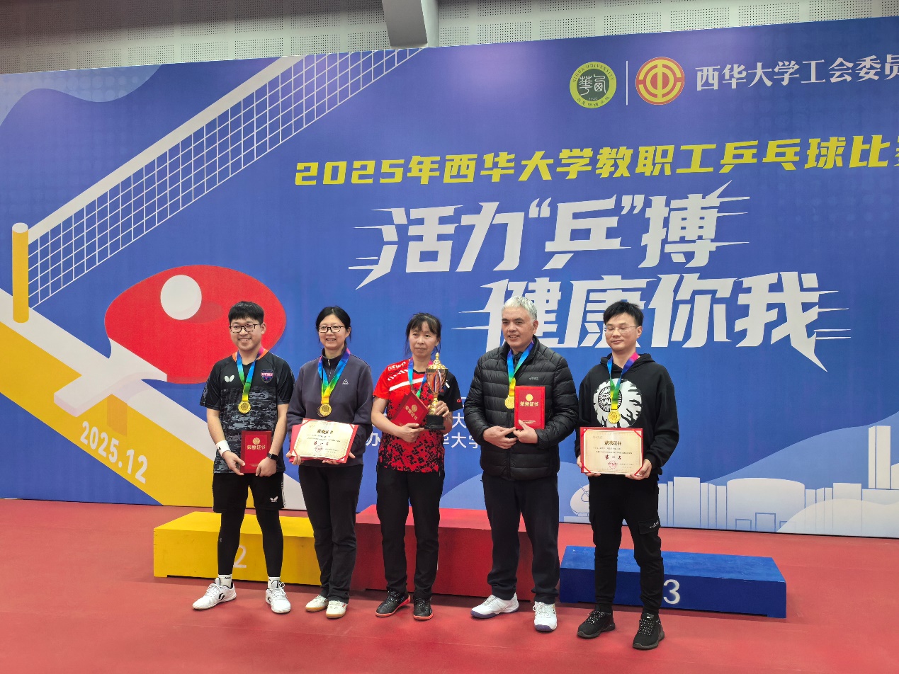 近日,以“活力‘乒’搏 健康你我”为主题的2025年西华大学教职工乒乓球比赛顺利收官。betway88西汉姆联教职工代表队积极参赛,在赛场上挥洒汗水、奋勇争先,凭借扎实的球技与顽强的斗志斩获多项荣誉,成为本次赛事中亮眼的“黑马”之一,充分展现了外语人团结协作、积极向上的精神风貌。