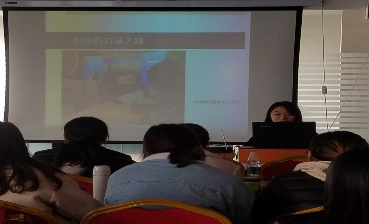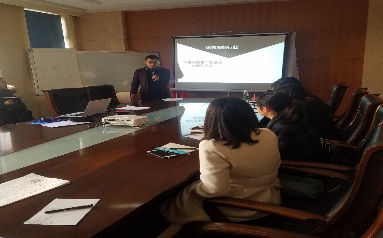 下午1:40,同学们来到了精译通翻译公司。精译通是生产型企业的典型代表。公司的杨琴老师就“译员的能力与素质”向同学们进行了讲解。她指出,对于翻译公司的专职译员来说,中外文语言互译能力居第二位,最重要的职业能力是计算机操作。除此之外,互联网资源的使用能力、专业领域知识、文本审校能力也至关重要。杨琴老师还向大家介绍了Trados、MemoQ等多种计算机辅助翻译工具。最后,精译通总经理马帅先生为大家介绍了公司的基本情况、实际翻译案例等,演示了自主研发的翻译辅助工具,让同学们了解了翻译行业的最新情况。