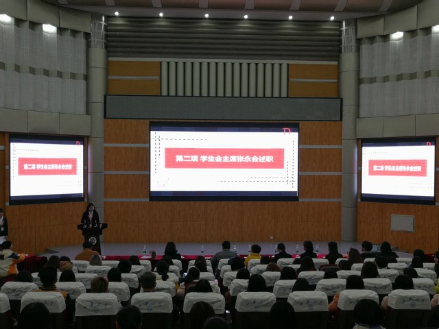 大会在庄严肃穆的共青团团歌中拉开序幕。随后,学生会主席张永会以及各部门就2017年度本岗位的履职情况进行了述职。各部门结合部门特点及工作性质对本学期工作进行了详细陈述和展示,对工作中出现的不足进行了反思并提出解决办法,特别是围绕自身的工作理念、总结工作上的得失、工作中的改进措施等方面展开了汇报。述职大会结束后,学院新媒体运营中心指导老师梁正科宣读了betway88西汉姆联首届新媒体运营中心成员名单,并对名单成员颁发了聘书。