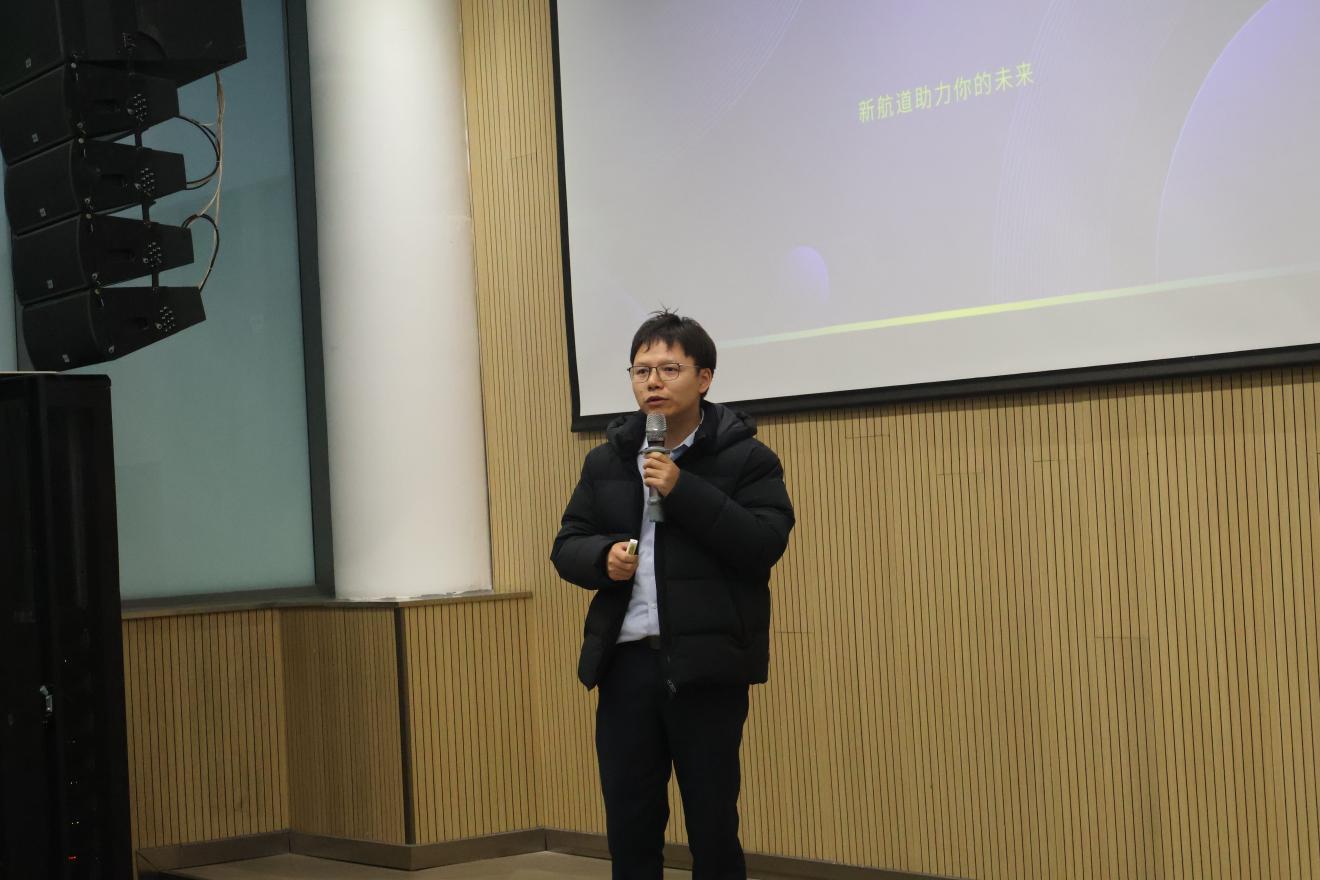 随后,新航道求职辅导资深讲师郑长江针对翻译专业学生的求职特点,系统讲解求职定位、行业选择、简历撰写、面试技巧及职场适应等核心内容。郑老师还通过分享翻译与相关跨领域岗位的招聘实例,为同学们提供针对性求职策略与能力提升建议,现场干货满满,拓宽了学生的职业视野。