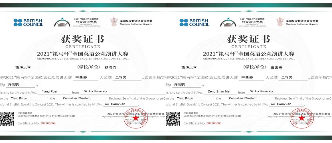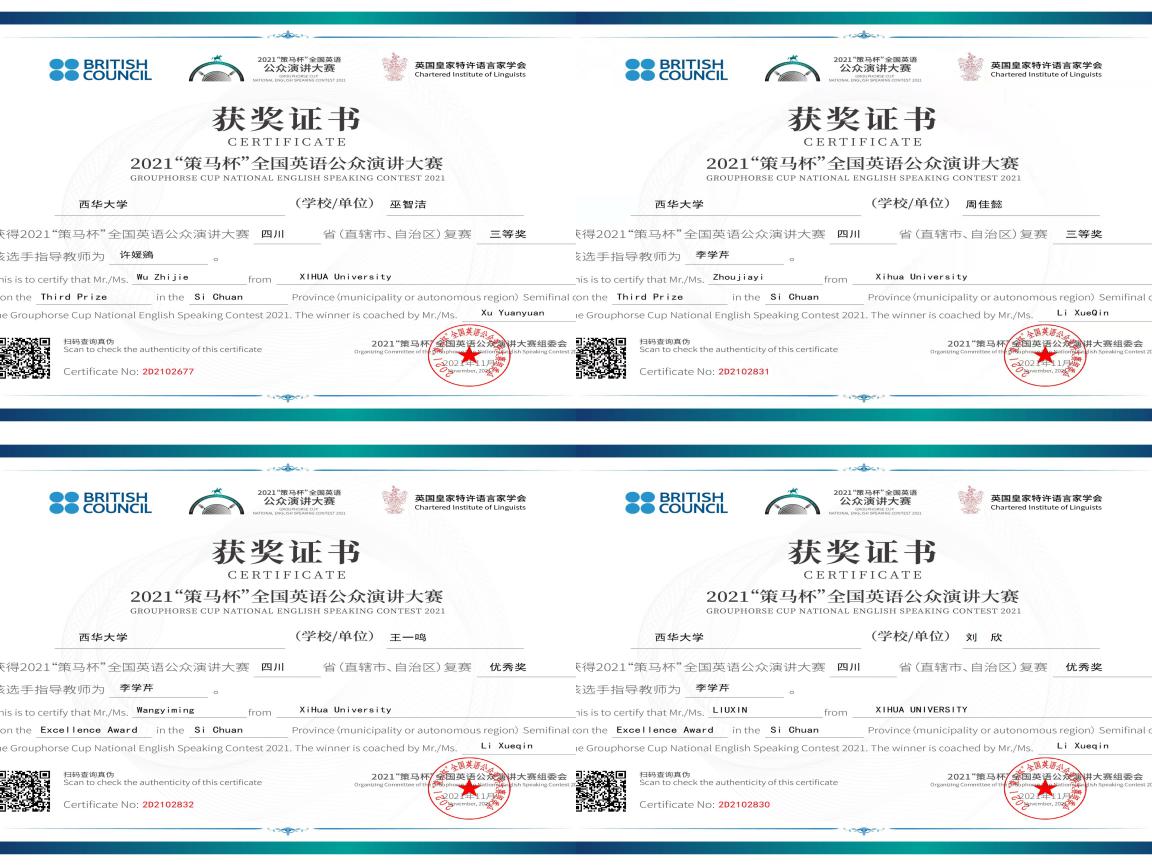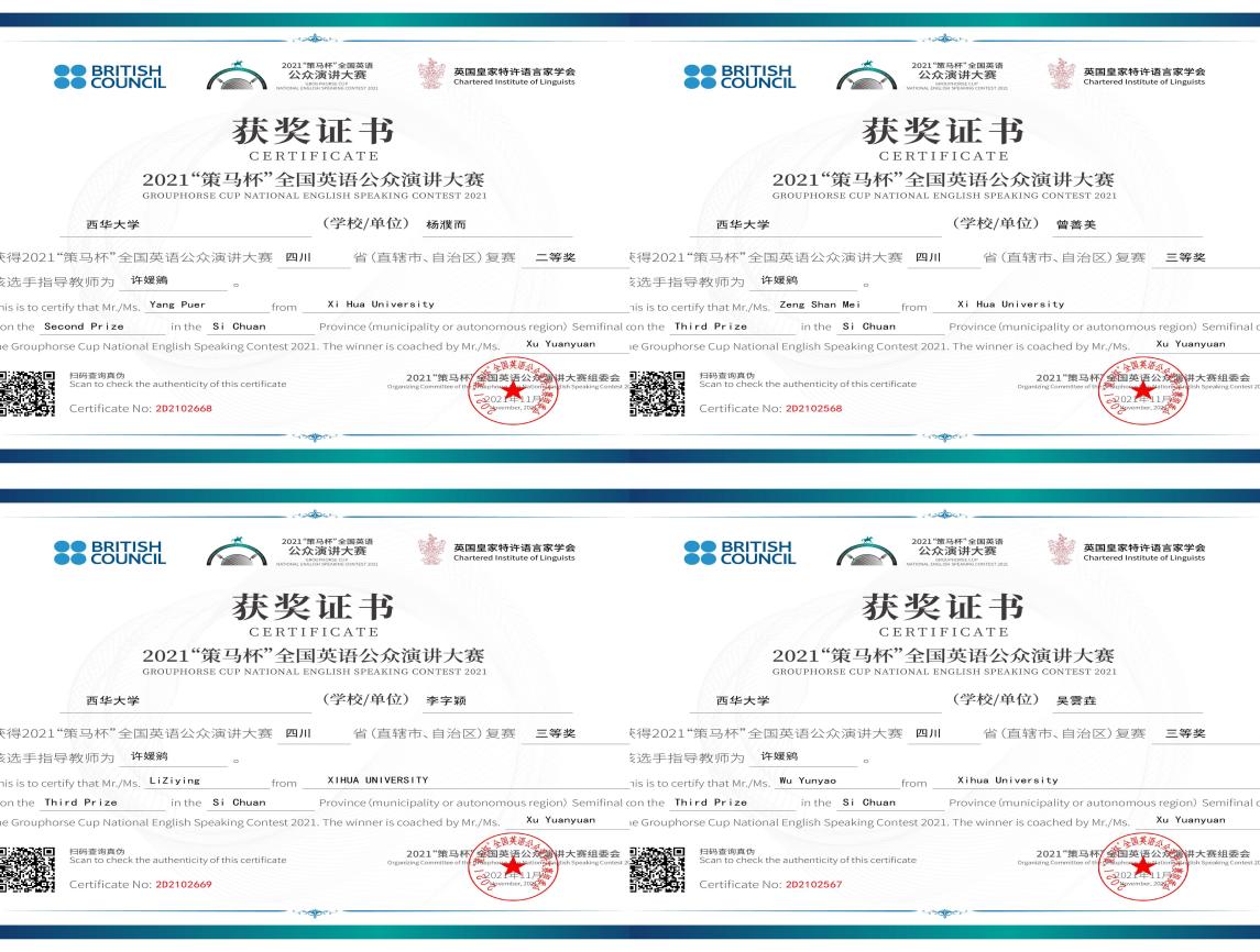 我校学子在本次大赛取得优异成绩,展现了西华学子的英语语言能力,彰显了我校近年来深化教学改革的长足进步与成效,巩固了以赛促教、以赛促学、以赛促改、以赛促建的治学理念。我校师生也将再接再厉,力争再创佳绩。
