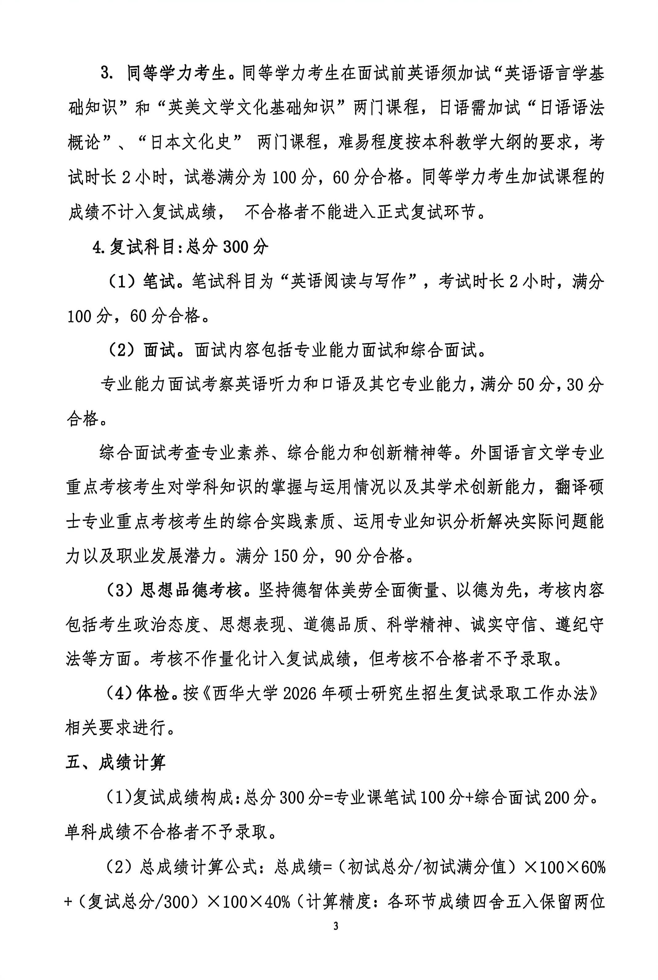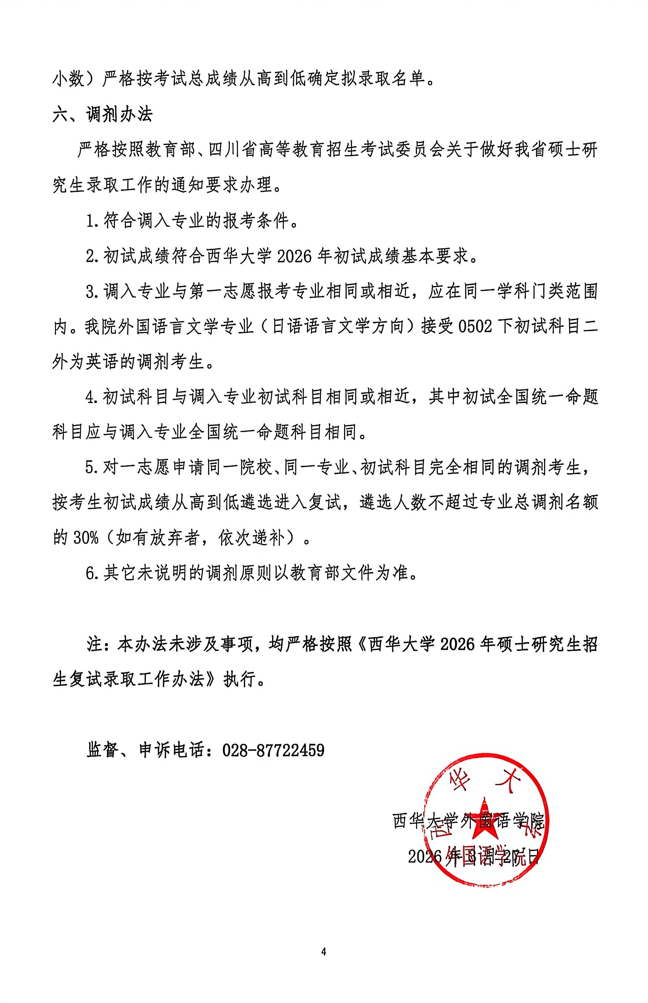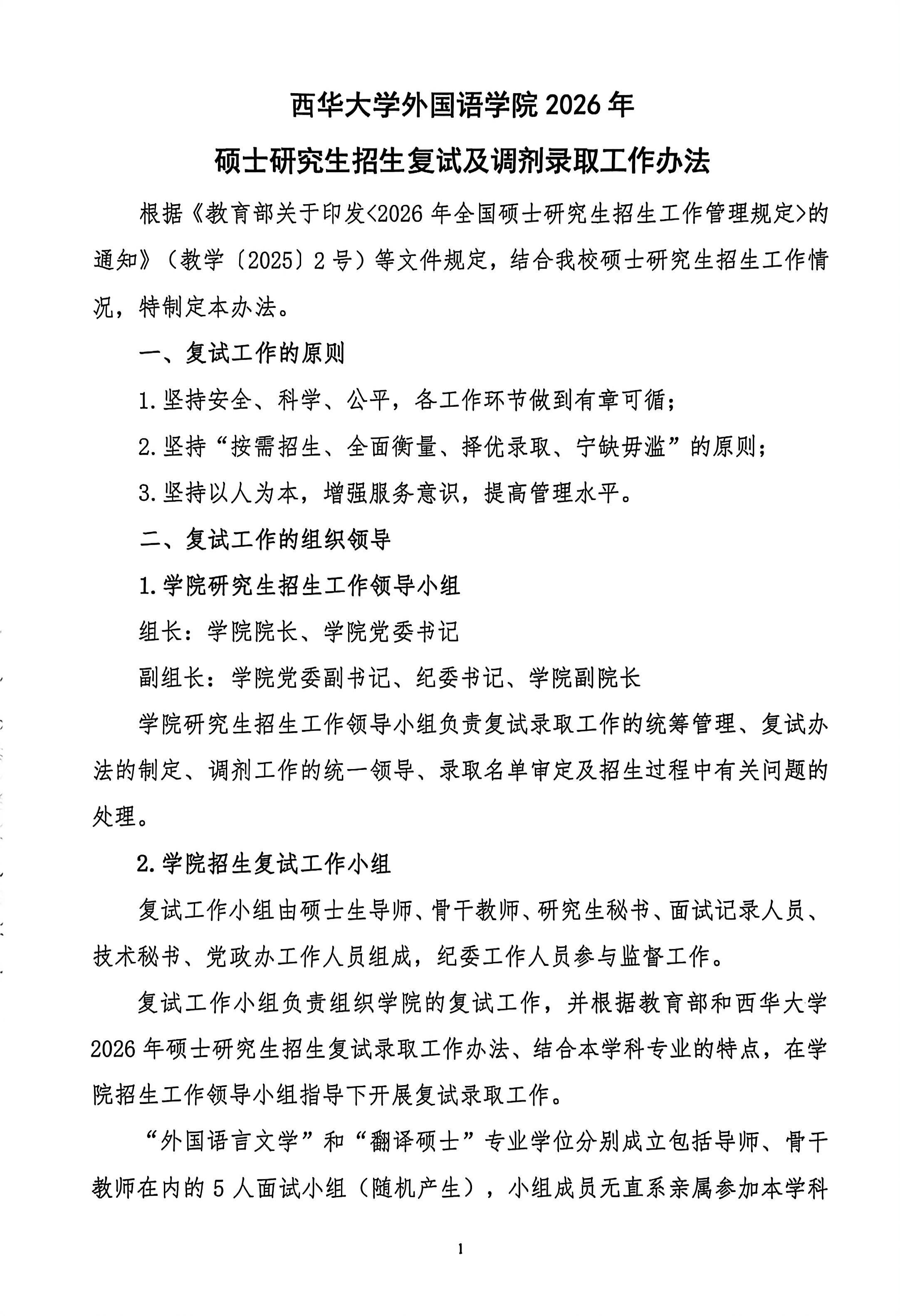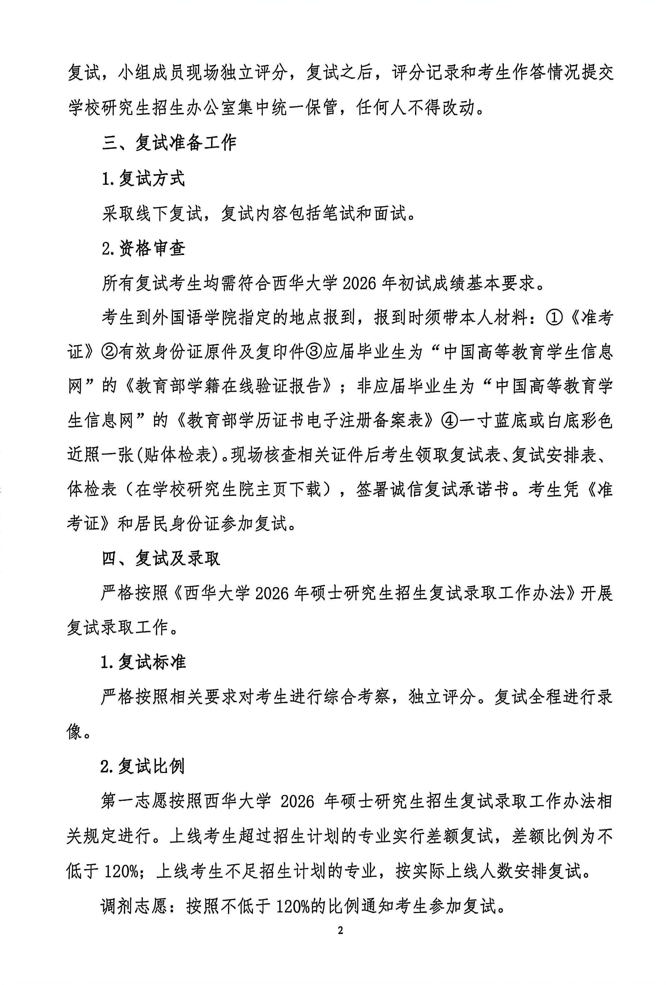 西华大学betway88西汉姆联2026年硕士研究生招生复试及调剂录取工作办法