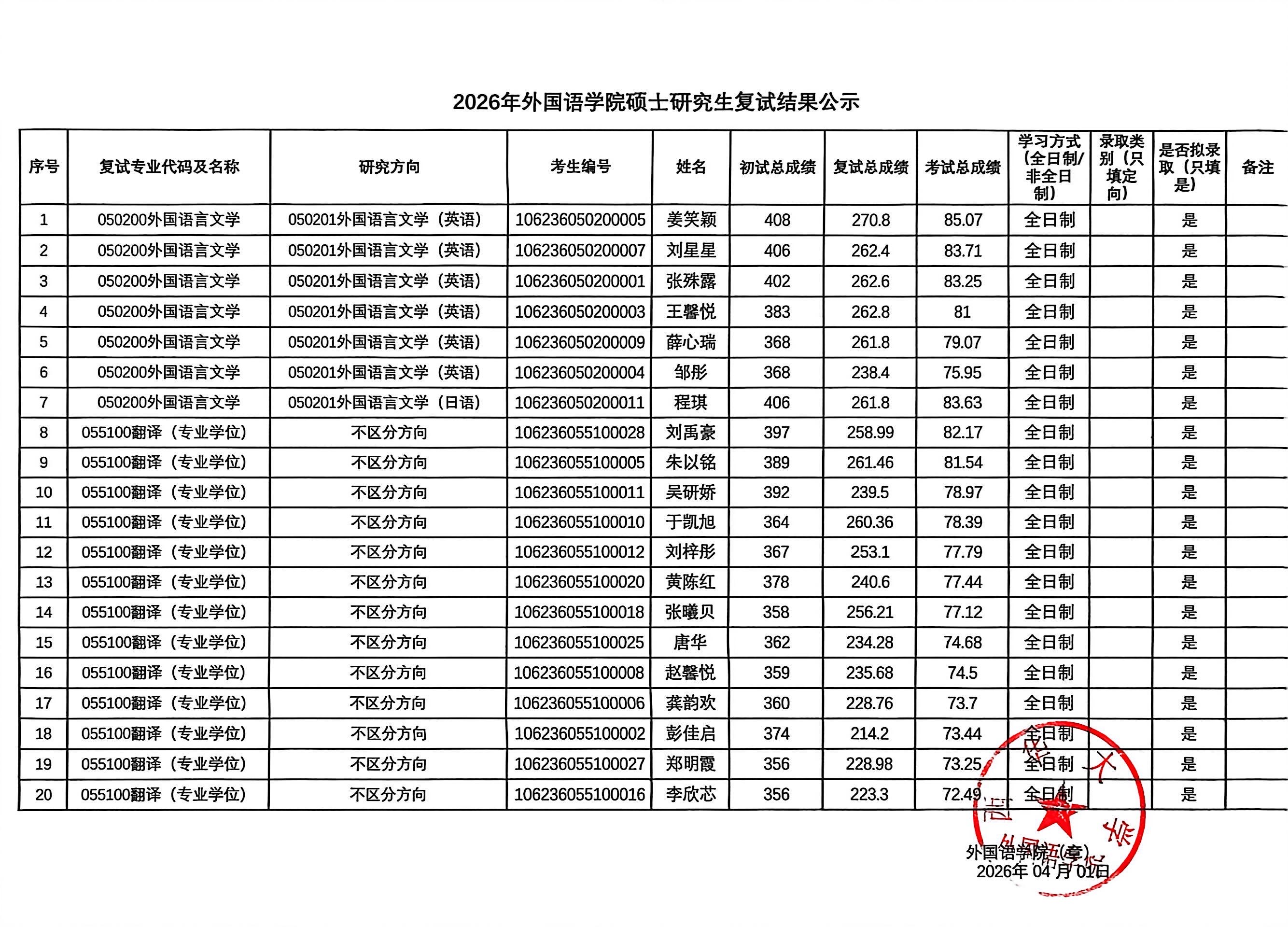 西华大学betway88西汉姆联2026年硕士研究生复试结果公示