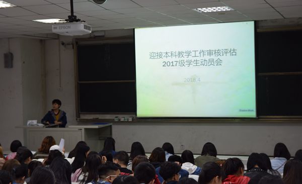 4月15日晚7点,我院2017级全体本科生召开了迎接本科教学工作审核评估学生动员会,会议由2017级辅导员曾渝理老师主持。此次会议的目的是让学生了解审核评估的目的和意义,更好地参与学校迎评的各项工作。