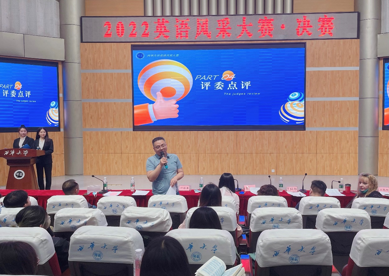 选手的精彩演讲结束后,由叶林果副院长、王阿秋老师、许媛鵷老师和彭旭老师对比赛进行点评。叶林果副院长对本次大赛主题作出了评价,提出英语学科的魅力更有待同学们去发现,“寓学于练”是很好的学习方法,希望此类大赛多多开展、每年开展;许媛鵷老师鼓励了各位参赛选手,并为同学们介绍了一些演讲技巧;彭旭老师对选手发言时的一些细节问题展开了说明;王阿秋老师则总结了本次大赛举办的全况,同时同现场即兴的表演激发同学们对于多维度学习英语的热情评委老师们精炼的总结让每一位同学都受益匪浅。