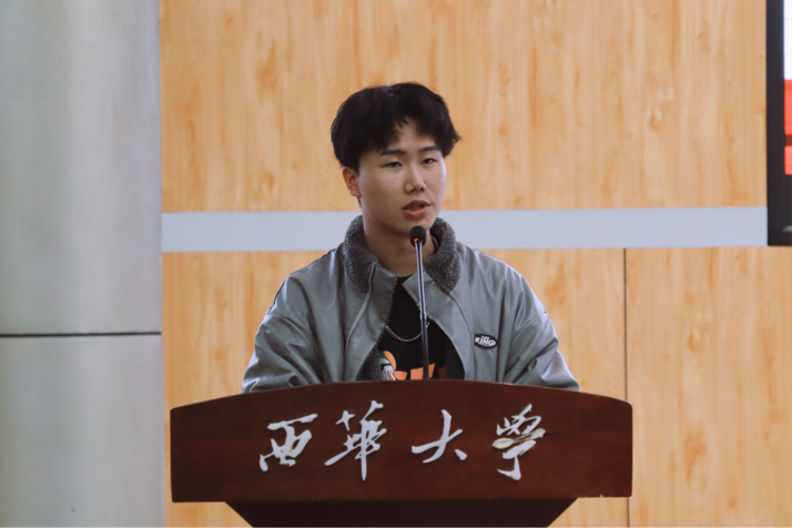 而后,第十九届主席团成员何涛上台发言,何涛同学以自己的学习工作经历为例,建议各学生会成员合理分配自己的学习时间和工作时间,做到学习与工作“两手抓、两不误、两促进、双丰收”。