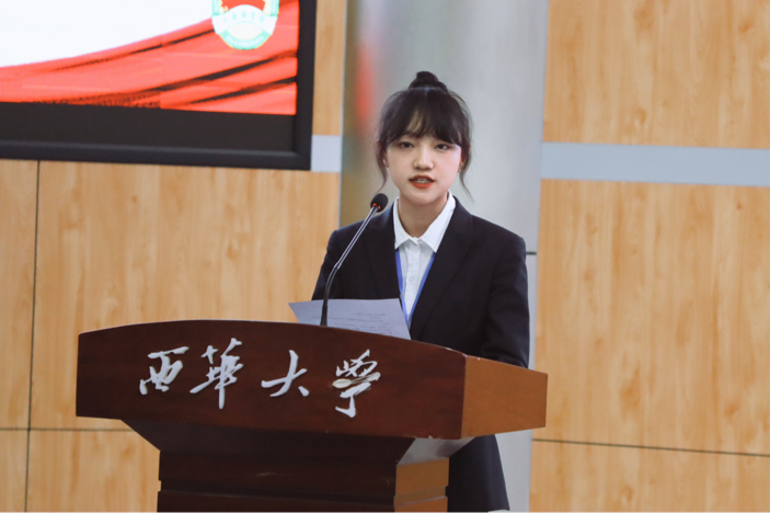 随后,团委学生会干事代表李础羽发言。李础羽同学表达加入学生会的初衷,感叹学生会其乐融融的氛围,明确学生会成员的职责所在。最后,第二十届团委副书记李字颖上台进行工作展望,李字颖同学着重强调学生会成员要铭记服务同学的原则,用行动证明自我、奉献自我、提升自我,用行动为学生会添彩。