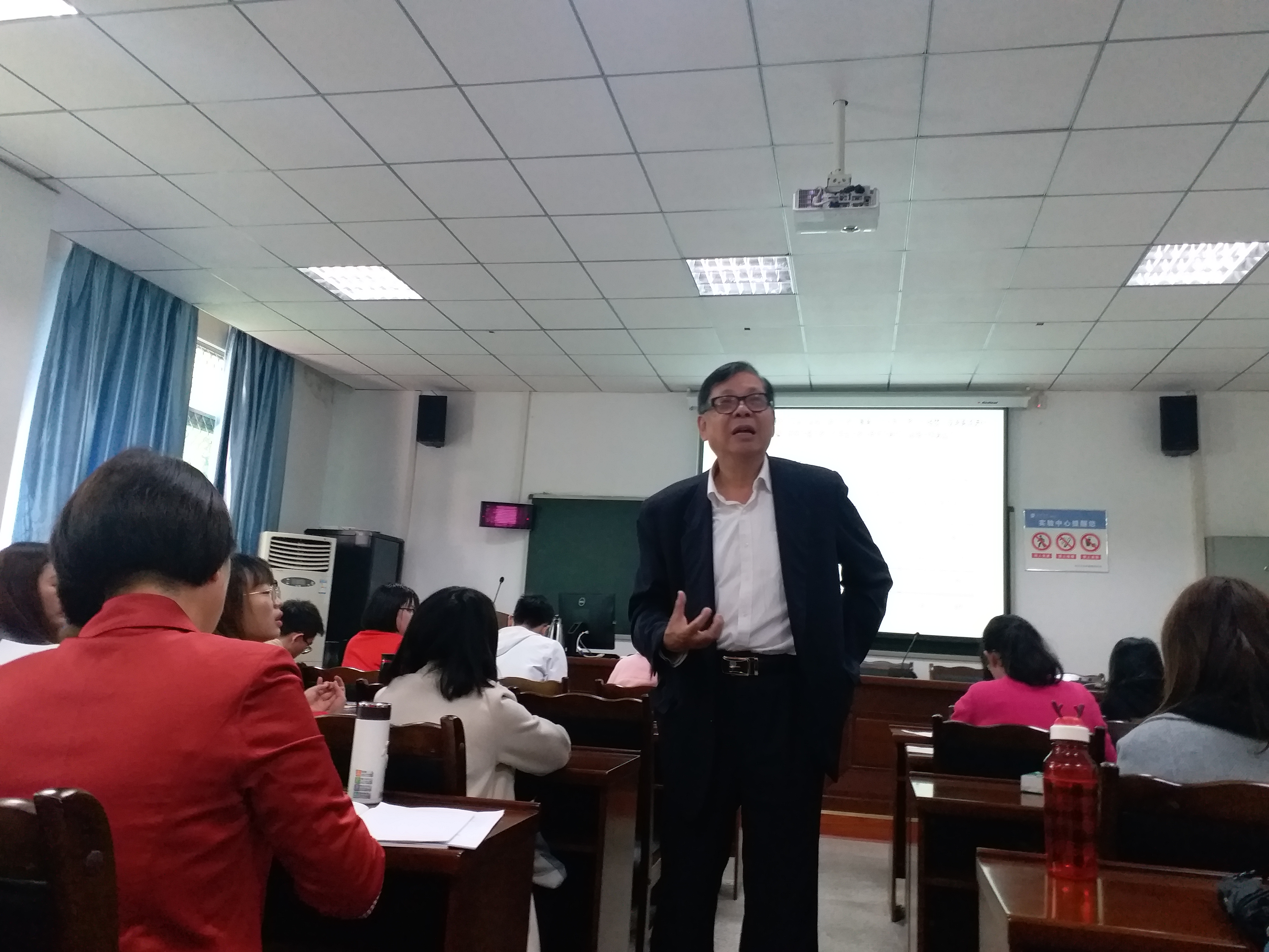 讲座上,王寅教授还强调了学习西方哲学、逻辑学、学科理论知识以及多学科交叉学习的重要性。王寅教授讲课风格轻松幽默,他以通俗易懂的例子向大家传输了发人深省的道理,涉及到老师怎么教、学生怎么学、应树立怎样的求学观、学术观等。