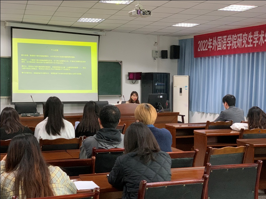 2021级外国语言学及应用语言学专业的张正敏同学,针对论文写作提出了自己的建议。她提出研究生应什么时候写、可以投到哪里等有用信息,为研究生同学们理清了时间线。她还强调需关注学界动向,在写论文时引用借鉴学界最新的论点,并进行理论方面日常积累。