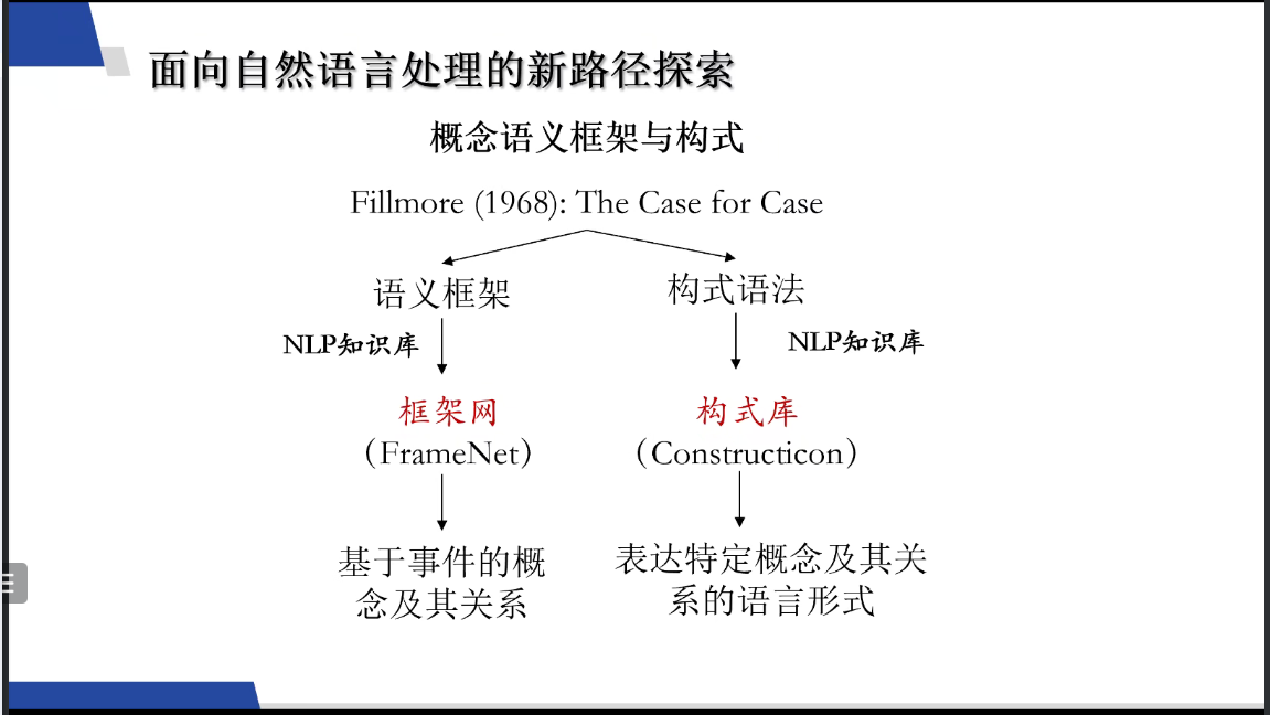 第三部分中,田教授介绍了“概念语义框架与构式”这一面向自然语言处理的新路径探索,并介绍了NLP领域中构式语法的发展及研究过程,通过介绍设计流程展示了句子聚类中的事件框架与构式。