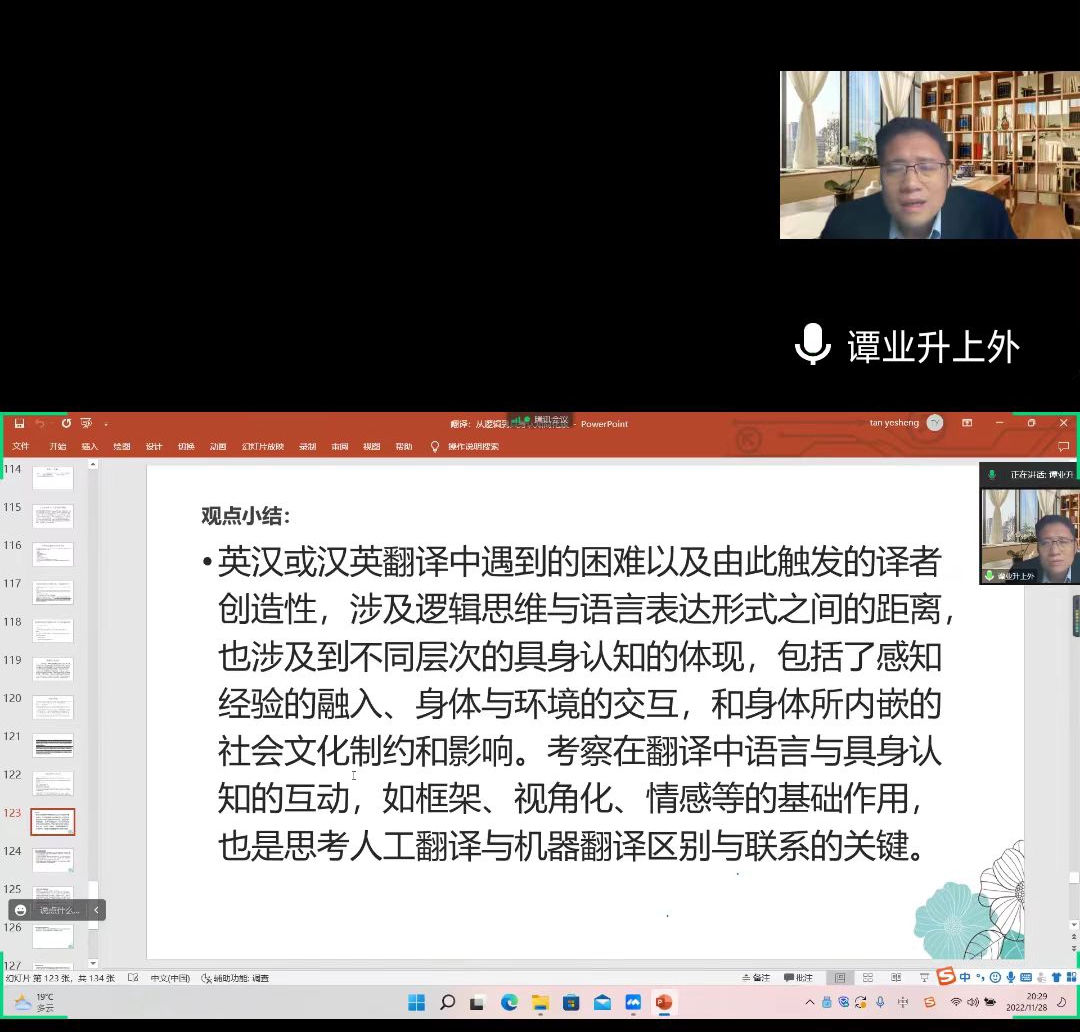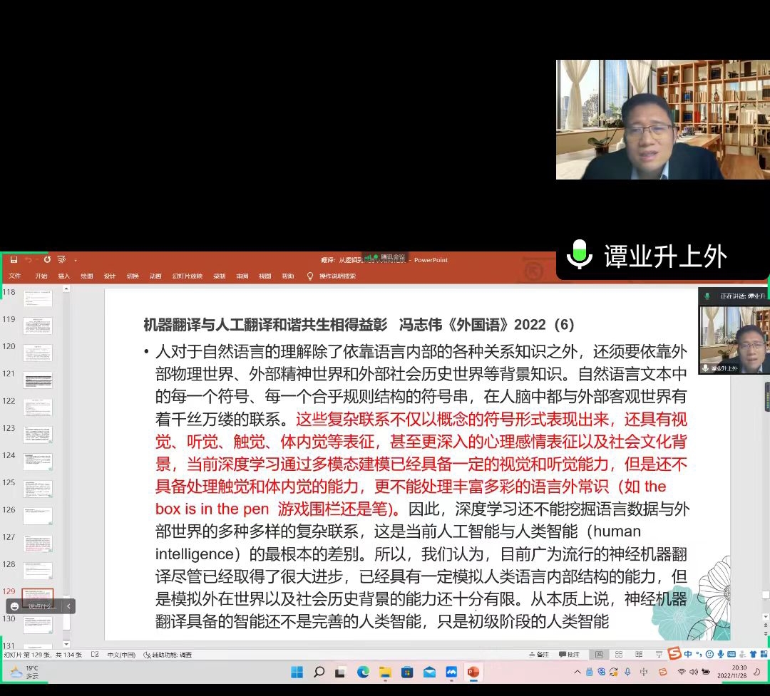 11月28日晚上19:00谭教授以《翻译:从逻辑到具身认知》为题给西华大学betway88西汉姆联研究生带来了精彩的学术报告,在线参加的师生近200名。