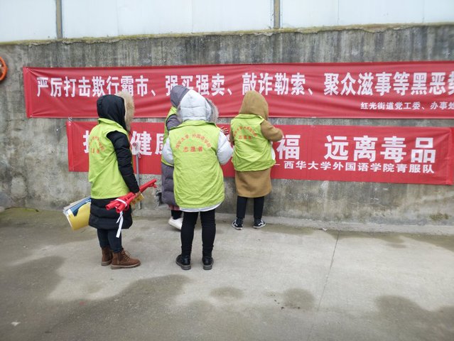 当前,在人类社会取得一系列进步的同时,毒品和艾滋病这两大毒瘤却在全世界迅速地传播和流行,已对人类的生存和发展构成了严重的挑战。毒品、艾滋病问题是全社会、全人类面临的严重问题,拒绝毒品,严防艾滋意义重大,任重道远。为响应团省委号召,同时也为更好宣传禁毒防艾的相关知识,我院青服队于2018年12月9日组织志愿者前往宋家林村开展以“关‘艾’在社区,禁毒不懈怠”为主题的宣传活动。