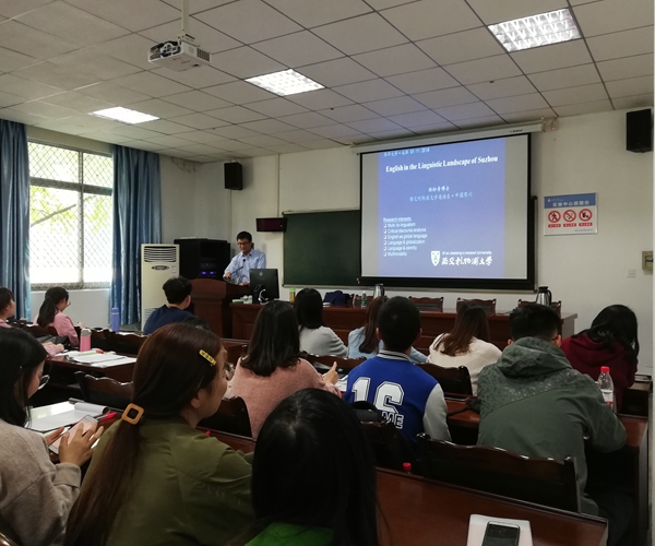 2018年11月1日下午,西交利物浦大学励松青博士应邀为我院师生做了题为“Creativity, fluidity and transgression: English in the linguistic landscape of Suzhou”的学术讲座。