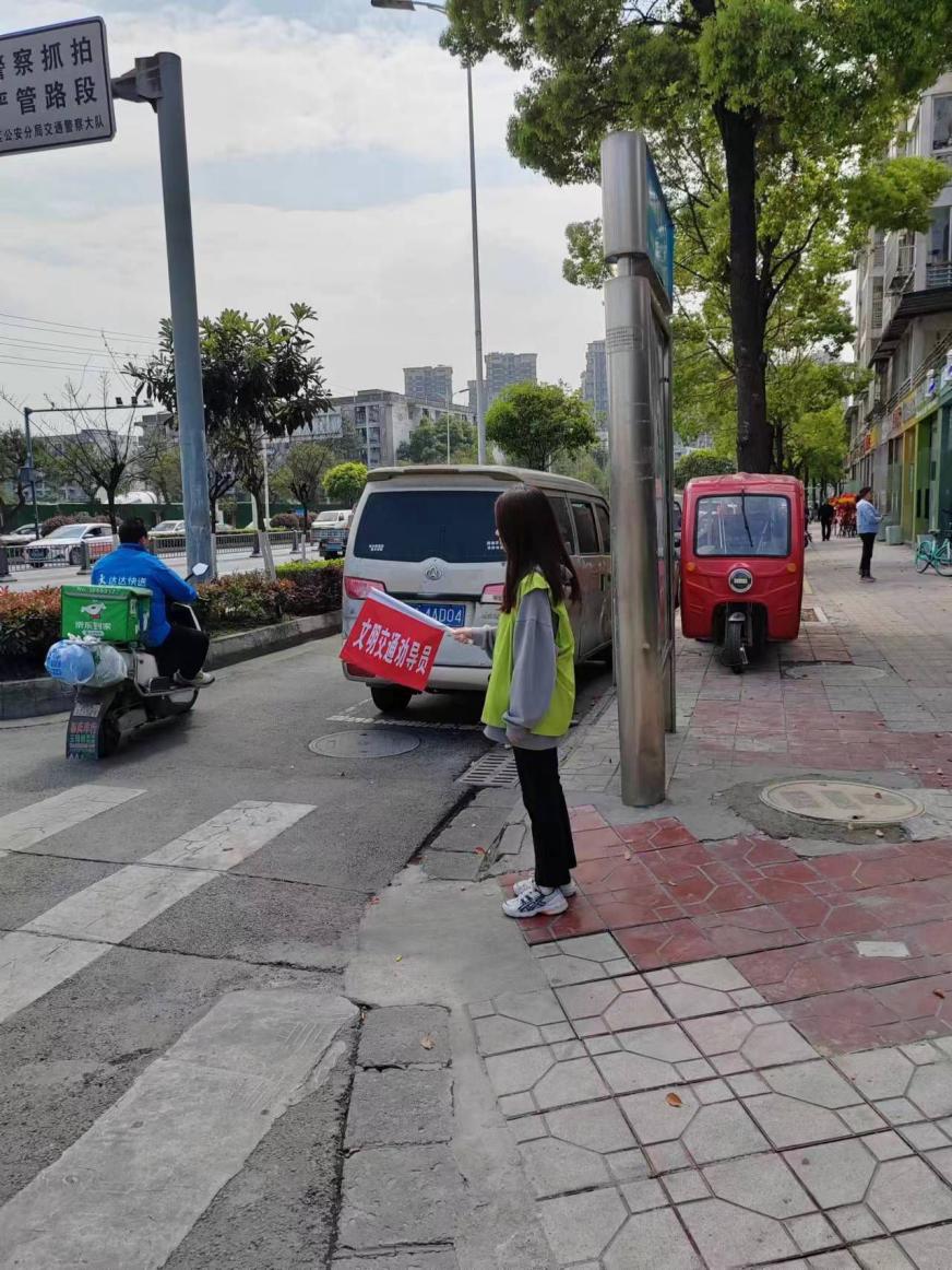 (图为志愿者进行交通劝导)