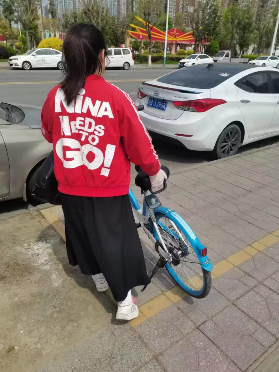 (图为志愿者将共享单车归位)