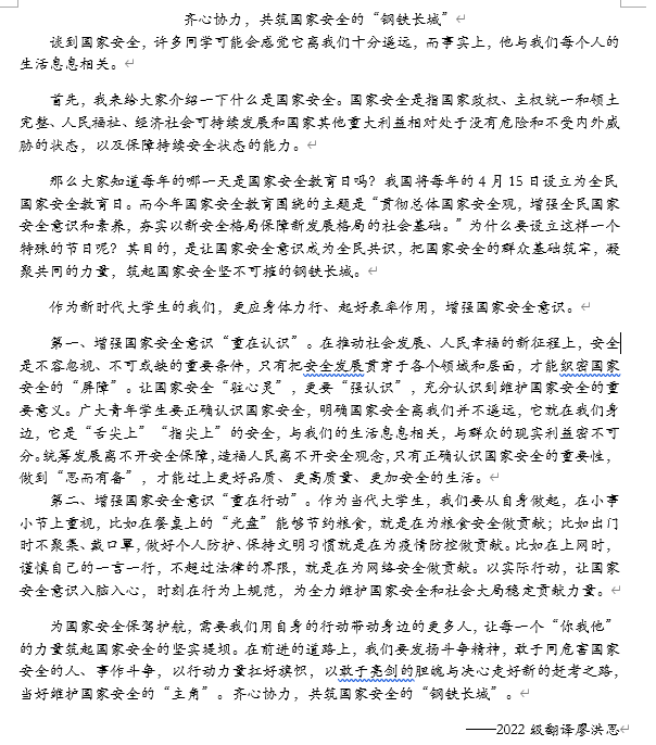 国家安全与每个人的生活息息相关。作为新时代的大学生,我们更要承担起应有的责任,时刻保持警惕,时刻关注国家的安全和发展,维护国家安全,共同促进社会的和谐发展。