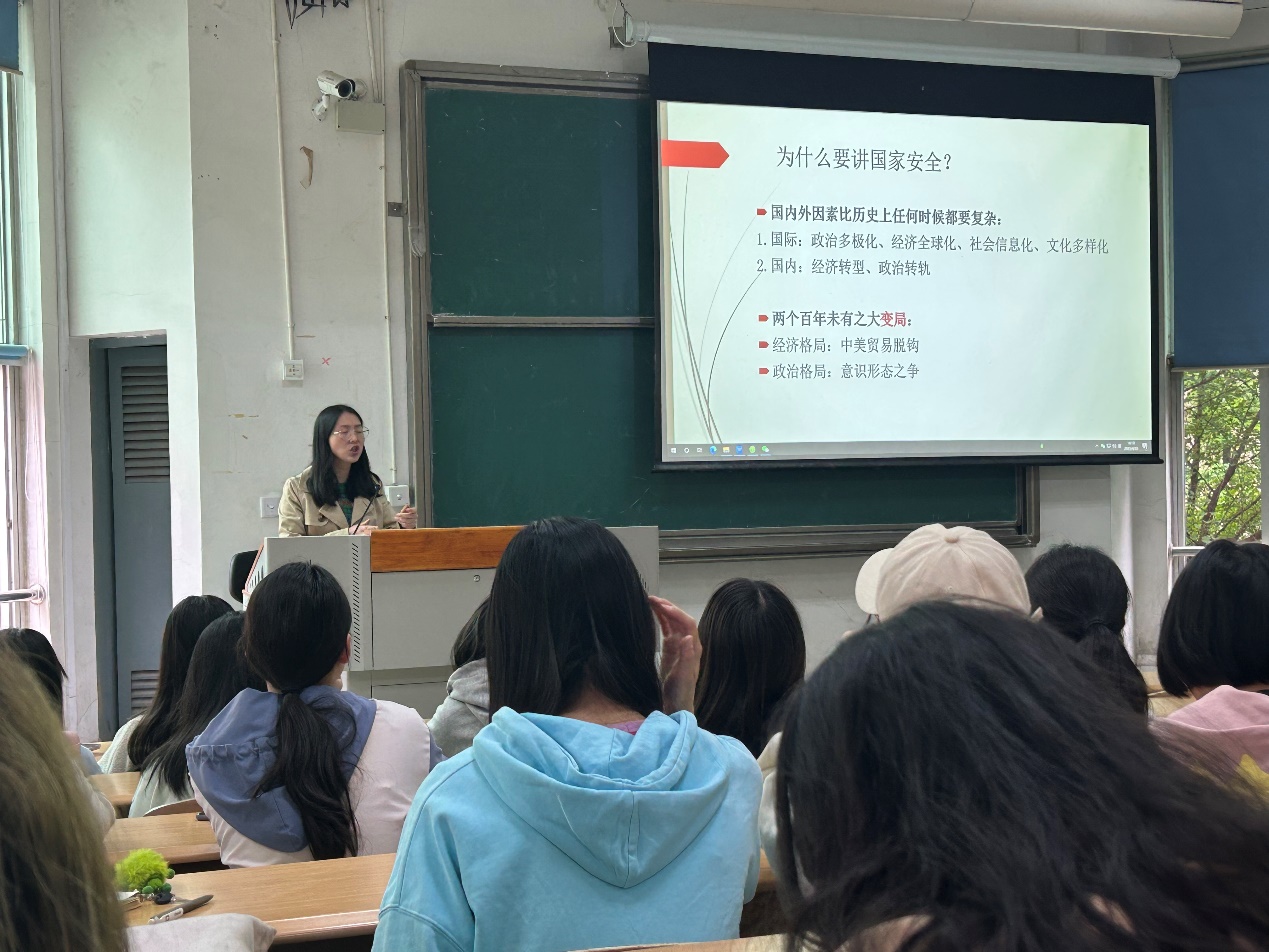 杨老师围绕“什么是国家安全?”“为什么要将国家安全?”“国家安全观要解决什么问题?”并通过这三个问题开展国家安全观的相关教育。最后,老师就“大学生需要怎么做?”对本次大会进行总结,强调:“大学生应当遵纪守法、安全用网、注意个人信息的保护、更要珍惜自己的生命。”