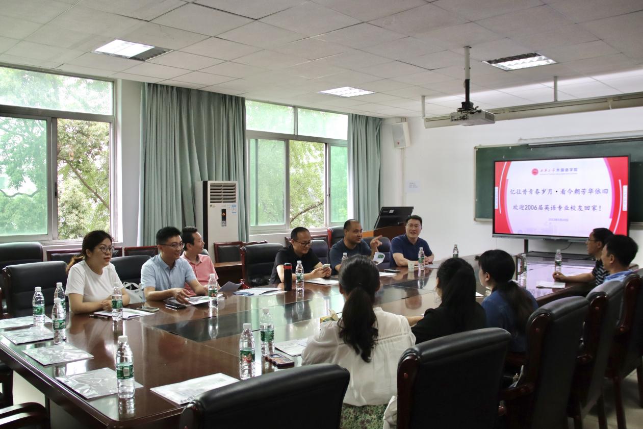 不忘学院奋斗初心,展望西华辉煌未来,感念恩师谆谆教诲,分享校友成功经验,我院于2023年5月20日在校内举办了betway88西汉姆联校友相遇20周年庆典暨“忆往昔青春岁月·看今朝芳华依旧”活动。2006届英语专业二十余名校友参与本次活动,学院党委书记唐润华、院长李国宏、党委副书记罗海、辅导员罗雨虹组织接待了校友,时任辅导员张彦,专业课教师罗擘、林晨军、杨春红、王阿秋应邀参与本次活动。