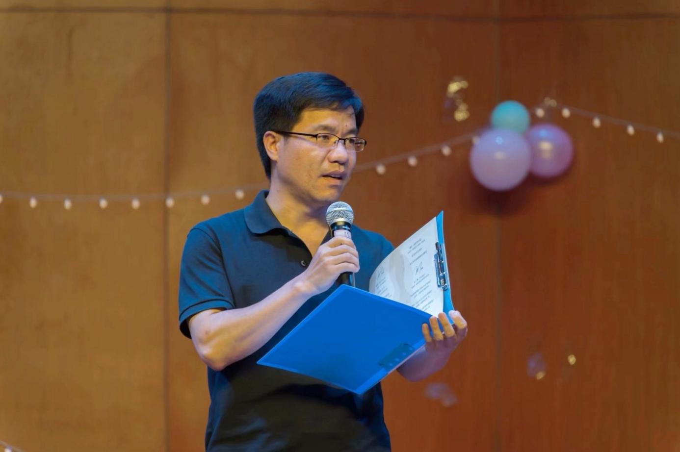 图为彭陈丽老师上台致辞