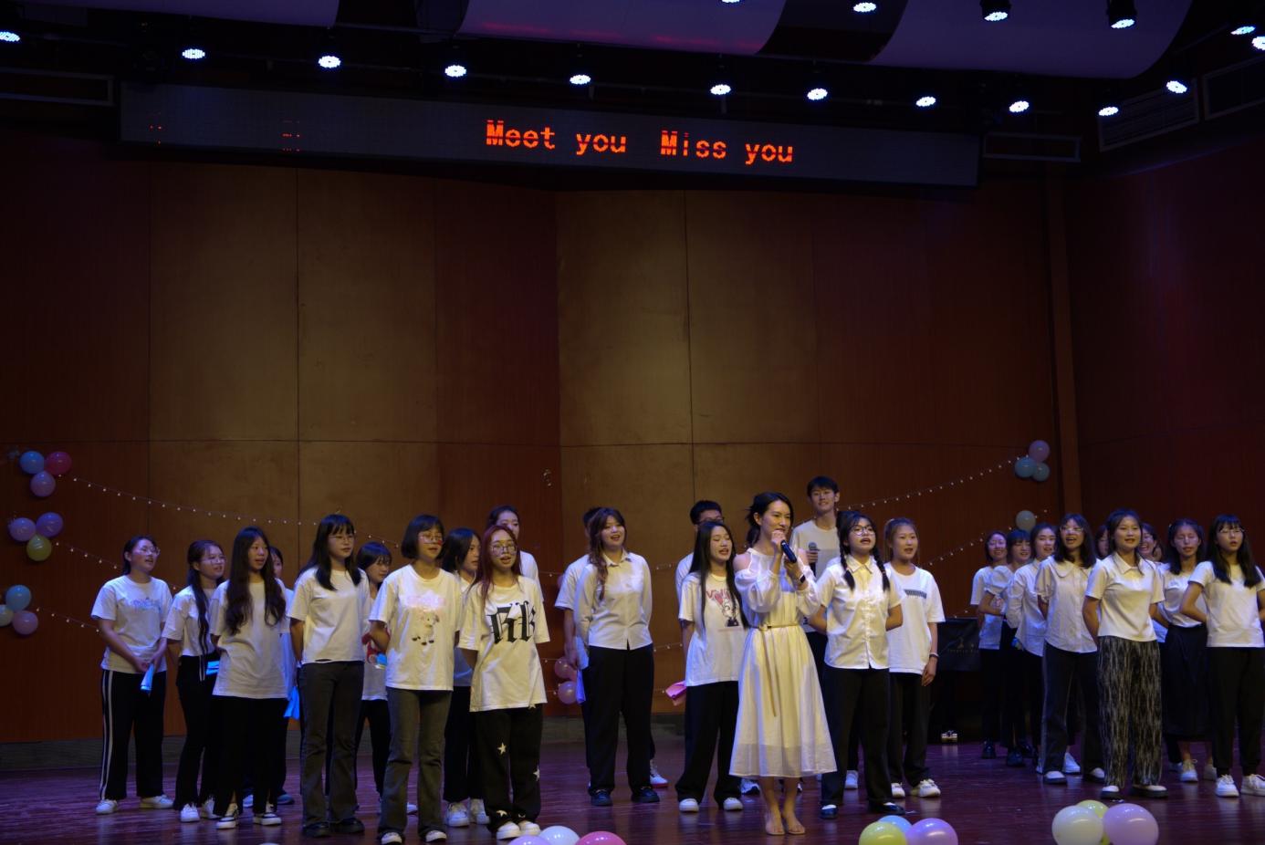 “Meet youMiss you19级辅导员彭陈丽老师上台致辞,欢乐的时光总是很短暂,我们在这里重温青春过往,因为明天就将各奔天涯。今夜,我们承载了太多的祝福与惦念,寄托了太多的关怀与企盼。